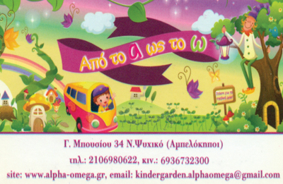 Το «από το α ως το ω» βρίσκεται στην Αθήνα, Αμπελοκήπους, σε πολύ κεντρικό σημείο, και θα χαρούμε πολύ να σας γνωρίσουμε και να μεταδώσουμε τη φιλοσοφία μας σε εσάς και στα παιδιά σας. Στόχος μας είναι να δημιουργήσουμε μια καλή και καρποφόρα συνεργασία, προς όφελος πάντα των μικρών μας μαθητών.